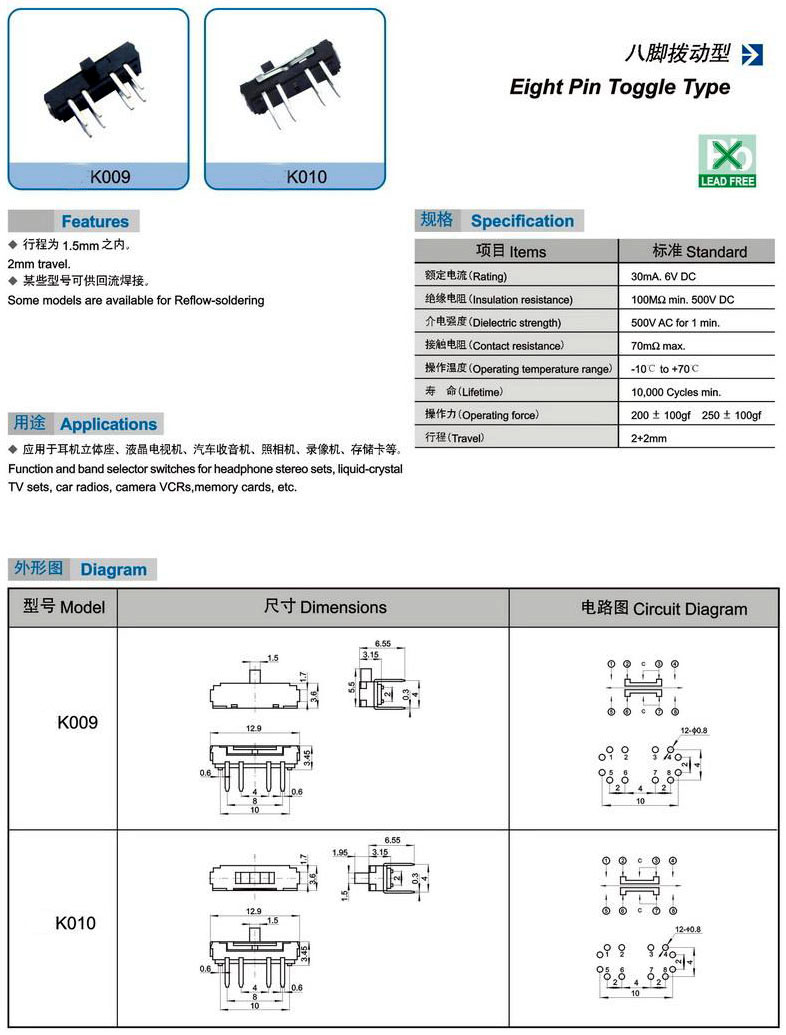 K009 K010(Eight Pin Toggle Type)八腳撥動(dòng)型